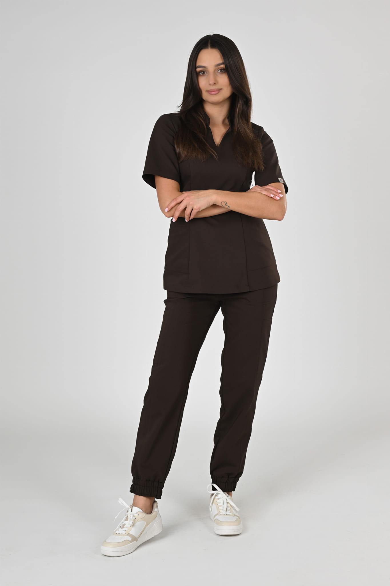 Bluzka medyczna damska Premium Scrubs stójka Chocolate/ Brązowa