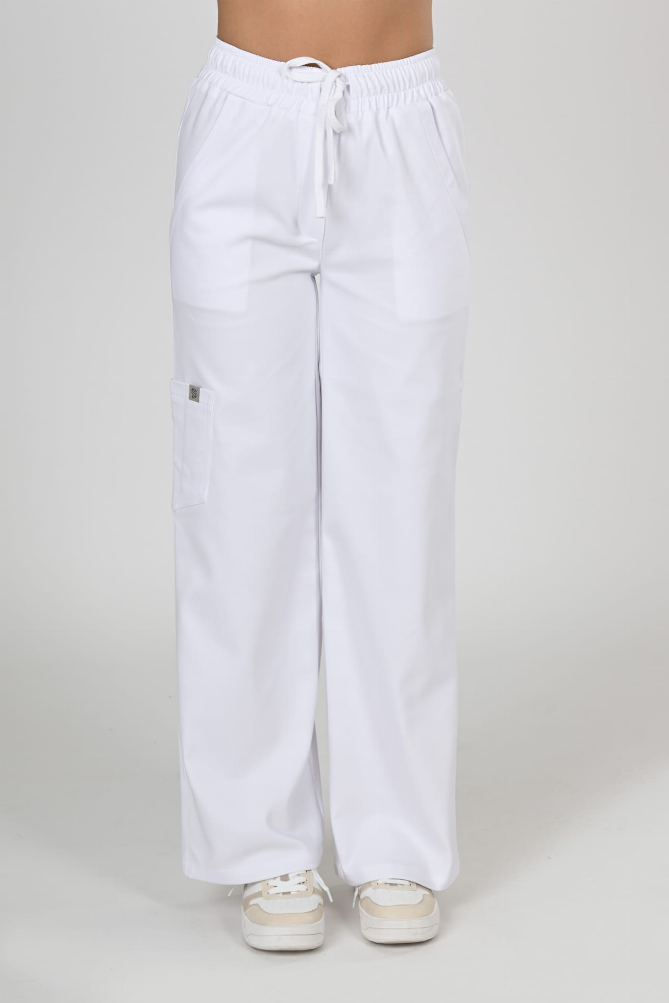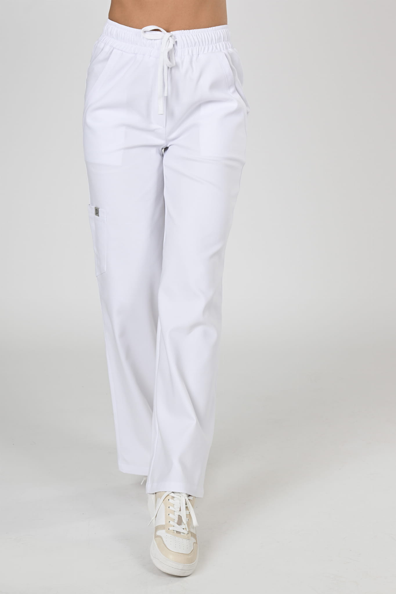 Spodnie medyczne damskie Premium Szerokie White/ Białe